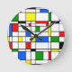 This clock has a Bauhaus design in primary colors that looks like stained glass. Colorful, bold, fun !