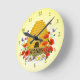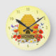 Cette ruche de prairie d'été élégante a une horloge a un thème apicole. Disponible sur d'autres produits ce design a une ruche traditionnelle avec une pancarte disant le miel et bourdonne autour du pré de pavots et de fleurs margueuses sont quelques abeilles occupées et papillons bleus. Les numéros d'horloge sont conçus comme du miel coulant tandis que l'arrière - plan est un motif jaune nid d'abeille. Cette belle horloge de ruche de pré fait le cadeau parfait pour les apiculteurs et tous ceux qui aiment le goût du miel. Plus amusant apiculture gardant des cadeaux et des produits disponibles dans la boutique Chastemoon.