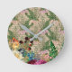 Horloge Ronde Berries pourpres et Roses sur Ephemera de Newsprin