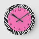 Black and white zebra print. Les objets de design noir et blanc pattern and a hot pink circle in the middle.