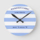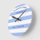 Classic Lake house Bandes horizontales bleues et blanches Horloge. Personnalisez le nom de famille et les coordonnées de la maison du lac. Coussin à la mode personnalisable bleu clair et blanc rayures caractéristiques votre maison de lac latitude et longitude. Recherchez vos coordonnées sur n'importe quel site de cartographie et entrez-les dans le champ modèle fourni. Faites un cadeau personnalisé unique pour les nouveaux propriétaires et un ajout parfait à votre maison au bord du lac.