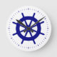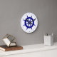 Horloge Ronde Bleu Marine Sur Décor Côtier Blanc Bateau Roue