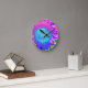 Horloge Ronde Bleu rose rétro tournesol funky photo