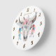 Horloge Ronde Boho Bohemian Cow Skull Horns Floral Feathers
