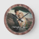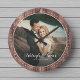 Horloge Ronde Bois de script de photo de mariage moderne rustiqu
