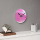 Horloge murale recouverte d'une tache colorée de rose et blanc. Personnalisable.