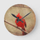 Un cardinal assis dans mon arbre Mimosa attend son tour à la mangeoire.