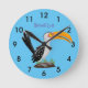 Horloge Ronde Caricature d'oiseau de safari de barbecue jaune am