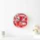 Cette horloge est recouverte de carrés modernes du milieu du siècle des étoiles rouges et noires. Amusant pour n'importe quelle chambre.