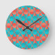 Cette horloge a un design art déco de deux tons orange et turquoise cercles à l'intérieur de triangles orange et turquoises.