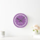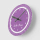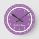 Cadran mural pour chambre de fille aux pois violets personnalisé avec leur nom.