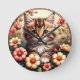 Un chaton adorable, assis dans une sublime bordure circulaire fleurie, crée une composition élégante et joyeuse qui représente l'innocence, la beauté et la chaleur de la nature.