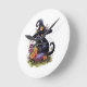 Horloge Ronde chat noir avec cowboy casquette avec fleurs