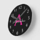 Horloge Ronde Chaud rose noir Script Girl Nom du monogramme