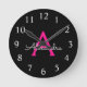 Hot Pink et Black Simple Script Monogram Clock. This makes the perfect sweet 16 birthday, wedding, bridal shower, anniversary, baby shower or bachelorette party gift for someone that loves glam luxury and chic styles.