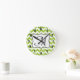 Parties scintillant moderne vert chaux Chevron Zig Zag Tissu de bande Imprimer Motif Monogramme initial Horloge murale Personnalisée