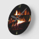 Horloge Ronde Cheminée Chaleureuse Photographie de scène hiverna