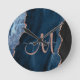 Horloge Ronde Chic Blue Rose Gold Agate Monogramme Personnalisé