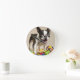 Horloge Ronde Chien de Boston Terrier jouant avec des jouets