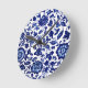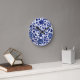 Horloge Ronde Chinois bleu marine foncé motif floral sur blanc