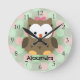 Horloge Ronde Chouette Brown mignonne avec bow rose