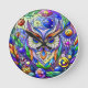 Horloge Ronde Chouette Whimsical Avec Yeux Sapphire