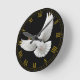Original fine art painting of a peace dove carrying an olive branch by artist Carolyn McFann of Two Purring Cats Studio printed on a quality clock.