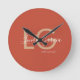 Horloge Ronde Coiffeur Orange Brun Clair Monogrammé