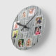 Horloge Ronde Collage de 8 photos personnalisé Bois gris rustiqu