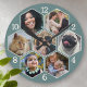 Horloge Ronde Collage de photos de famille 7 Hexagone de fleur s