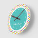 Colorful Polka Dot Blue Kid's Bedroom wall clock personalized with their name. Part of a large rainbow polka dot bedroom set.