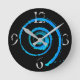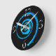Horloge murale avec image une image abstraite d'un torse bleu clair sur le noir, sur la face de l'horloge. Personnalisable.