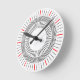 A clock face with a concentric circles design, in which rays are arranged to mark the minutes and hours in the outer circle, and used for decorative effect in the inner circles, the first inner ring having a tighter angular distribution of lines. However the deuxième anneau intérieur has the usual minute spaces. All the rays line up correctly and the hours are marked with a bolder red line in the outer circle providing both a decorative and practical clock face.