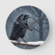 Black Raven Bird assis sur une branche d'arbre lors d'une nuit d'hiver sombre et enneigée. #raven #blackbird #horloge