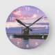 Horloge Ronde Coucher de soleil rose sur le lac