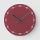 Trend Couleur Rouge Crimson foncé. Moderne et élégant, couleur solide, horloge ronde avec points blancs, marques minute et heure. Parfait pour ajouter un peu de couleur à votre décor. Design simple et propre avec des couleurs solides pour un charme intemporel. Magasinez nos couleurs tendance automne & hiver pour d'autres produits avec la même couleur ou d'autres couleurs tendance stylisées.