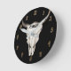 Horloge Ronde Crâne de taureau vache rustique noir cornes person