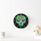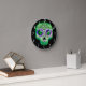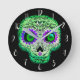 Horloge Ronde Crâne en sucre noir avec lueur verte et violette p