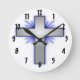 This clock has a silver cross design.