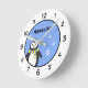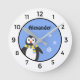 Horloge Ronde Cute baby penguin add name blue white kid