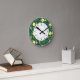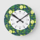 Horloge Ronde Cute Fraîche Citron Citrus Doodle Jaune Bleu