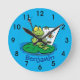 Horloge Ronde Cute funny green frog cartoon illustration round c