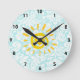 Horloge Ronde Cute Sun; Teal Damask