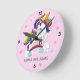 Horloge Ronde Cute Unicorne personnalisé Nom Pink Wall