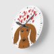 Horloge Ronde Dachshund aux cheveux longs avec Coeurs de Saint-V