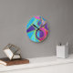 Horloge Ronde Dessin géométrique pourpre bleu rose d'art
