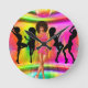 Horloge Ronde Disco dance scene with silhouettes, retro.