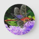 Horloge Ronde Dragonfly rouge sur Violet Violet Fleurs