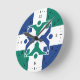 Horloge avec un design avec le drapeau de Columbia, Missouri. Un drapeau bleu et vert avec une croix blanche
