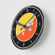 Le drapeau du Bhoutan Elégante horloge ronde avec le drapeau du Bhoutan positionné au centre et de beaux numéros d'horloge blancs sur le bord de l'horloge. Un arrière - plan noir élégant aux éléments blancs ovale finalise le design en mettant l'accent sur l'élégance. Une belle combinaison de noir et blanc avec l'intégration habile des couleurs du drapeau national font de cette horloge le cadeau parfait et la grande pièce de spectacle sur le mur. © PaysDuMonde